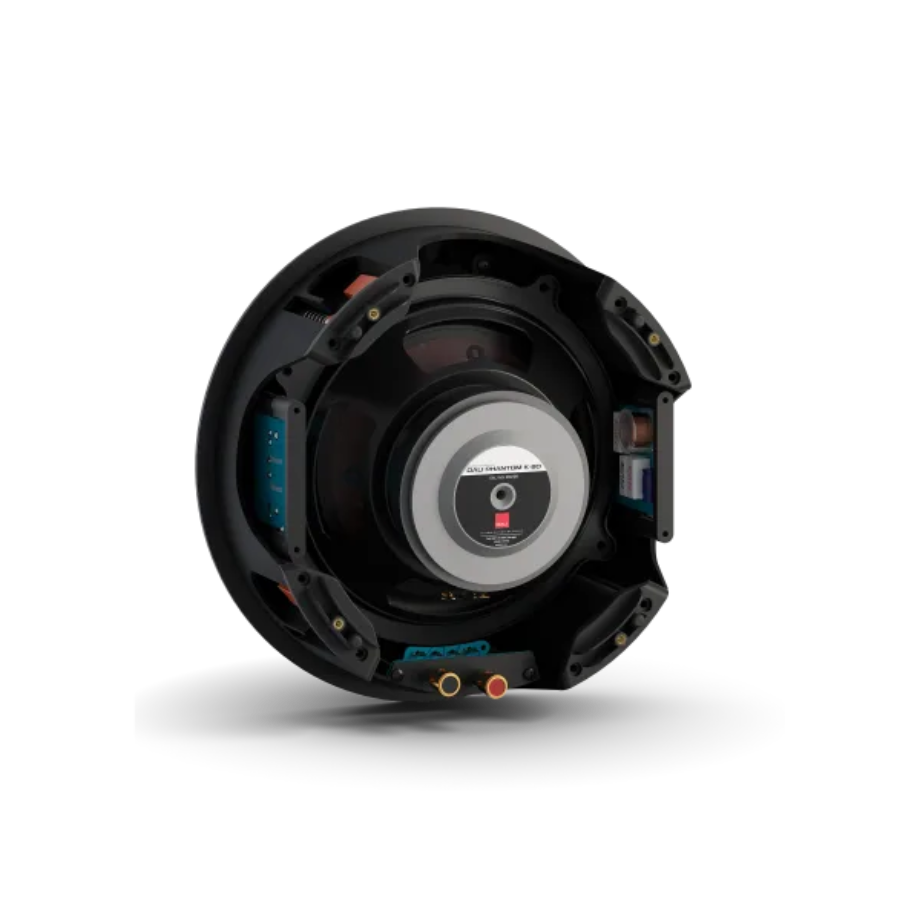 The PHANTOM K-80 produces an impressive bass response for its size. We use large magnet systems coupled to a very easy-to-drive moving system with long excursion, delivering deep and articulated bass. We've made the midrange slightly less prominent, giving an impression of more bass and a 'larger' or 'rounder' sound, which is often preferred in an in-ceiling or in-wall speaker. Switches on the PHANTOM K-80 also let you fine-tune the sound to suit your personal taste.